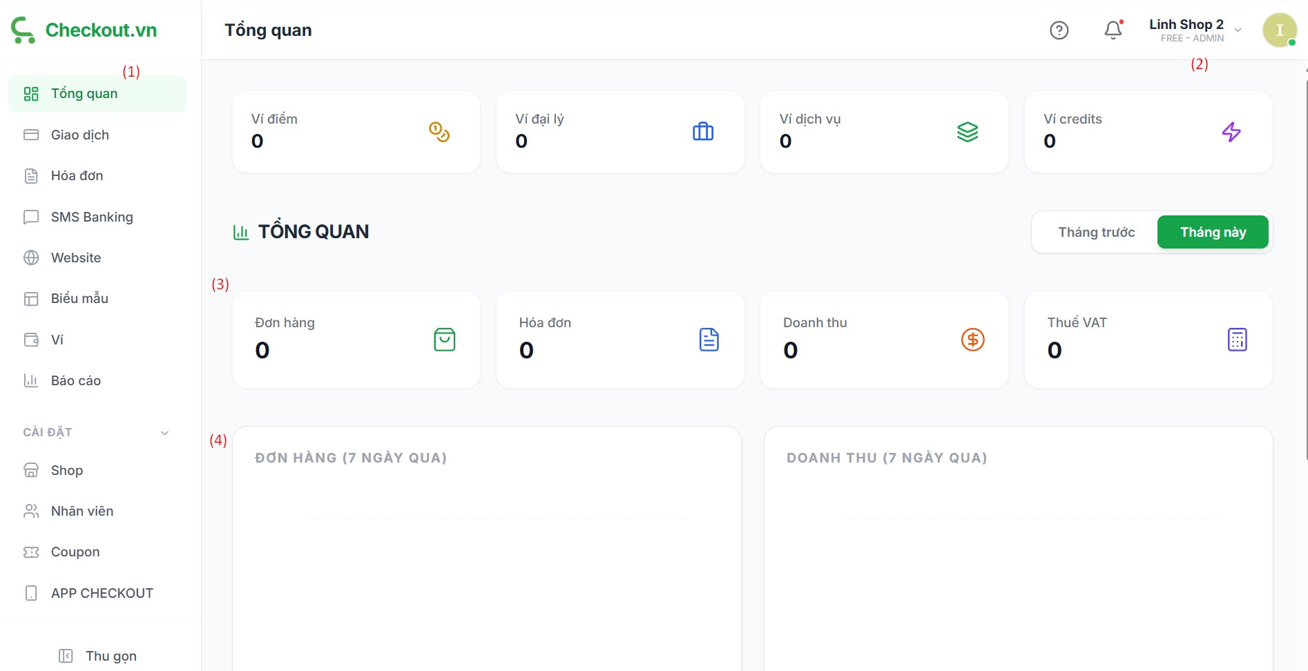 (1): Các mục quản lý của shop, chi tiết sẽ được giới thiệu và hướng dẫn trong những bài viết sau.