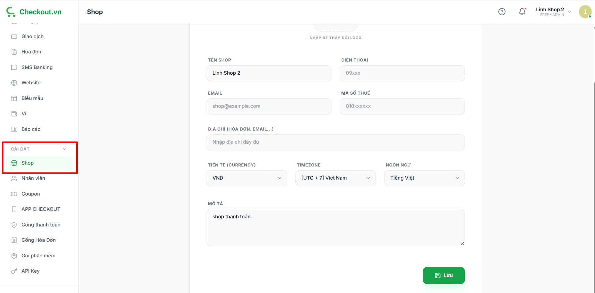 Để thay đổi thông tin shop, bạn vào mục Cài đặt >> Chung >> cập nhật lại thông tin >> bấm Lưu lại để hoàn tất.