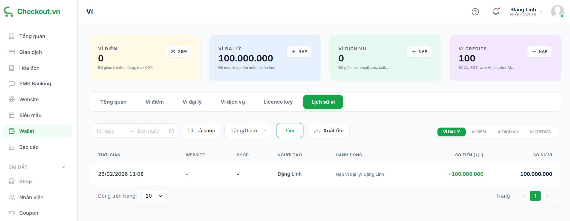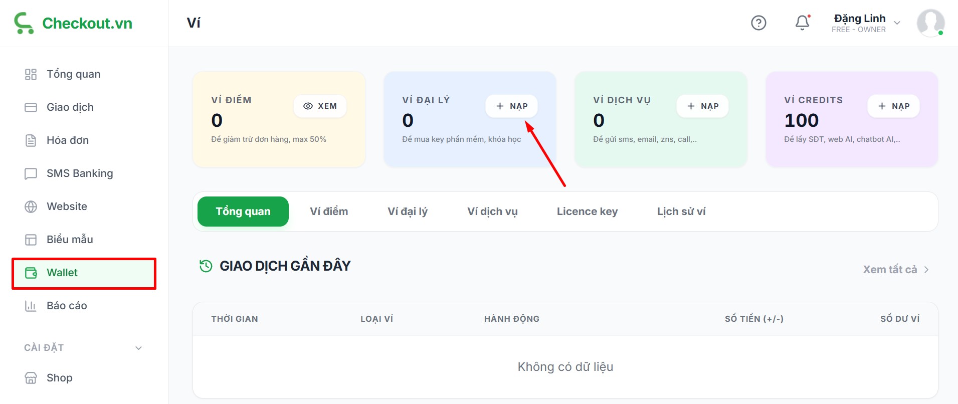 Với ví đại lý của Checkout.vn, bạn sẽ cần nạp tiền trước và nhận lãi theo số tiền nạp.